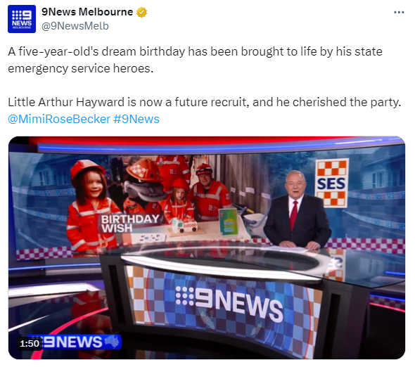 “It's nice to think our volunteers may have inspired Arthur to uphold the values we live by here at the SES Frankston Unit, and hopefully follow in our footsteps - already his dedication shows he will make a wonderful VICSES volunteer one day.
