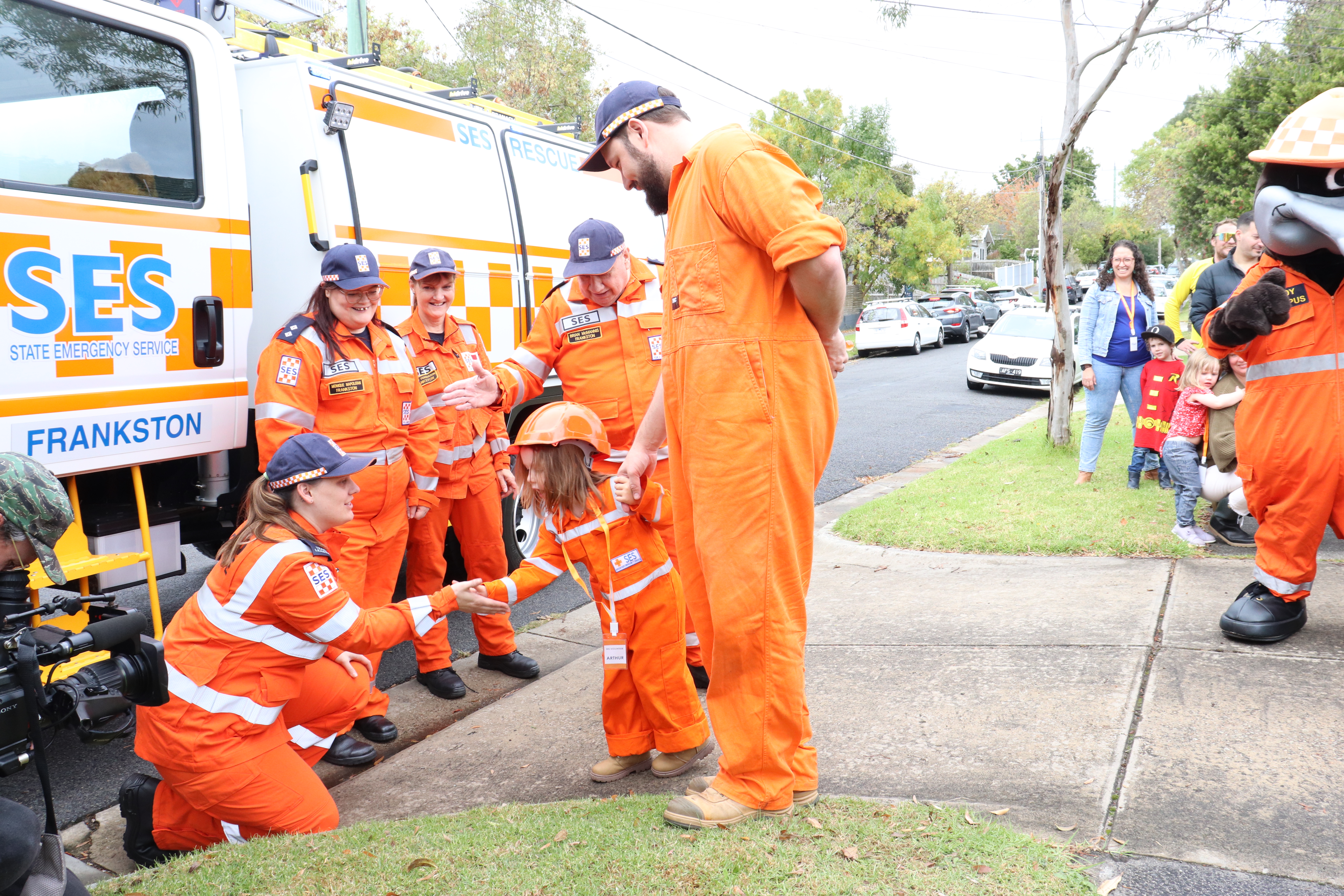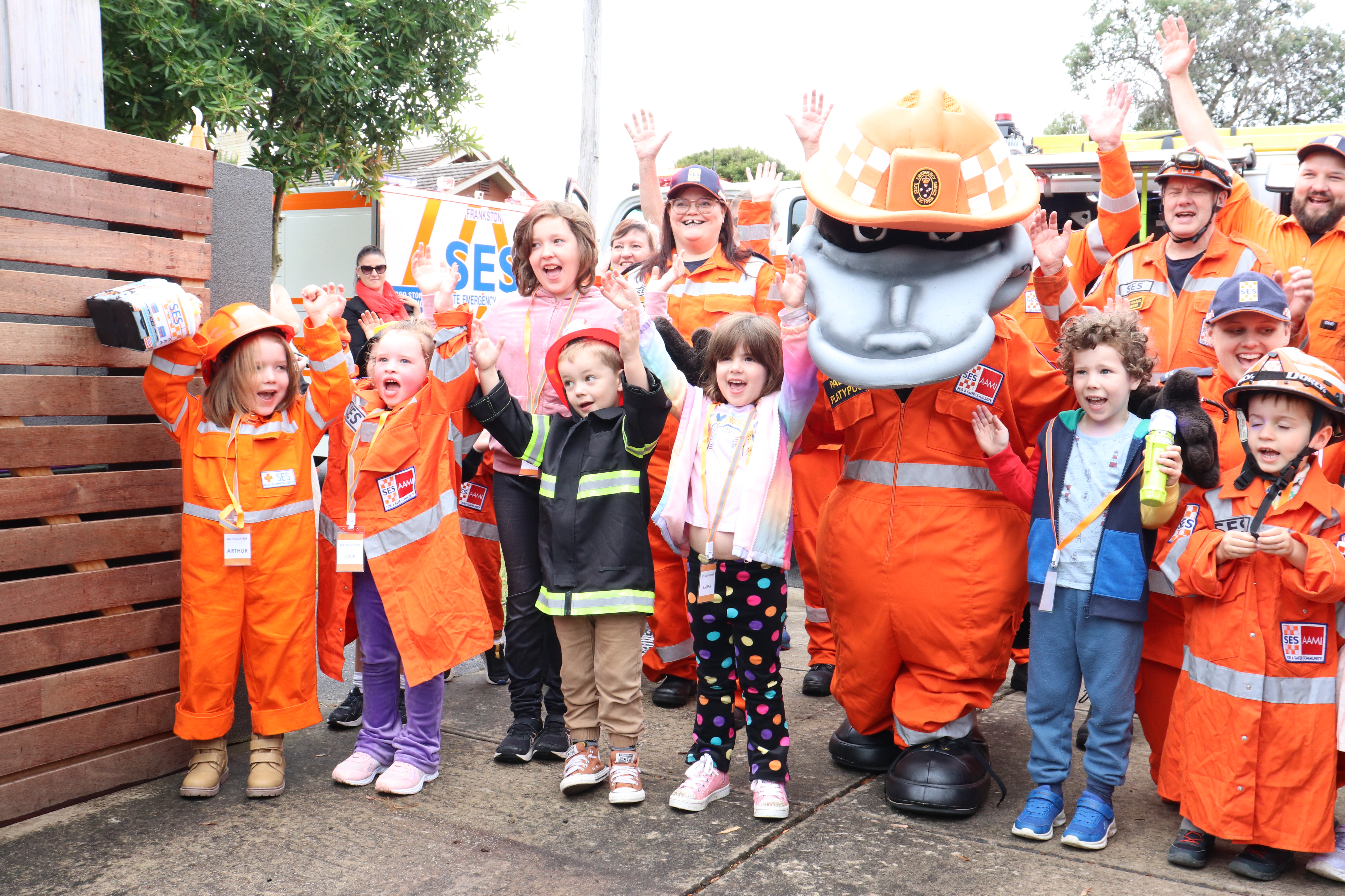 Arthur, who has since taken to recreating SES rescue scenarios during his play time, couldn’t contain his joy as sirens rang out along his street, and was more than happy to give VICSES mascot ‘Paddy the Platypus’ a high five as the party got underway.